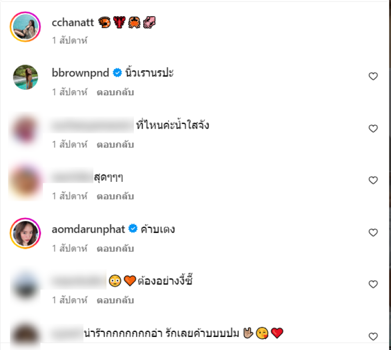 งานนี้ ทั้งเพื่อนๆในวงการและชาวเน็ตเข้ามาคอมเมนต์กันถล่มทลาย อาทิ ต้องอย่างงี้ซี๊,น่าร๊ากกกกกกกอ่า รักเลยค้าบบบปม ,แกรรรร มือแก ซนเกินนนน จะตีมืออออ,สวยเผื่อคนทั้งโลกเลยไหมมม ,แกรรรร มือแก ซนเกินนนน จะตีมืออออ เป็นต้น