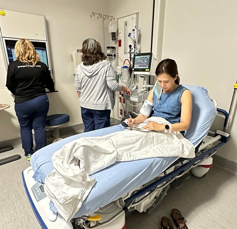 โดย มีภาพขณะ อุ้ม เข้ารับการรักษาที่โรงพยาบาล พร้อมข้อความว่า เมื่อคืนนี้ ต้องการการรักษาทันที หลังจากการเดินทางที่ยาวนาน และความเหนื่อยล้าจาก Jetlag รู้สึกเหมือนกำลังจะหมดแรง ปวดตามร่างกายมาก จนตาเริ่มบวม อาจจะมีอาการตากุ้งยิงกลับมาอีกครั้ง