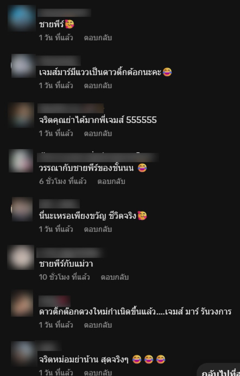 ท่ามกลางแฟนๆต่างเข้ามาคอมเมนต์แซวกันอย่างมาก อาทิ เจมส์มาร์มีแววเป็นดาวติ้กต้อกนะคะ,จริตคุณย่าได้มากพี่เจมส์ 555555,ดาวติ๊กต๊อกดวงใหม่กำเนิดขึ้นแล้ว เจมส์ มาร์ รันวงการ,และแล้วพวกพี่ก็หากันจนเจอนะคะ,คือความในใจใช่ไหมคับ หม่อมย่าแม่สื่อ,55555555555 ตกใจด้วยเลย เป็นต้น