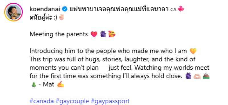 ซึ่งบรรยากาศก็เต็มไปด้วยความอบอุ่น เมื่อครอบครัวฝ่ายชายต้อนรับเขื่อนอย่างเป็นกันเอง พร้อมพาเที่ยวชมธรรมชาติสวยๆ ของแคนาดาอย่างเต็มอิ่ม