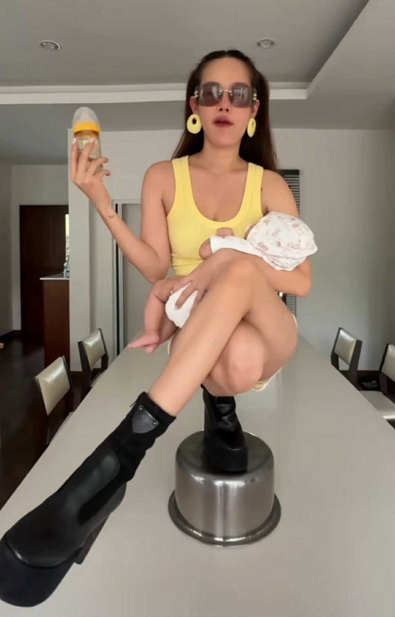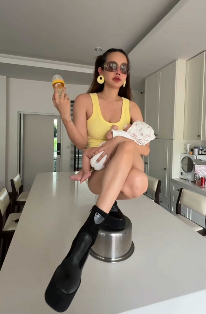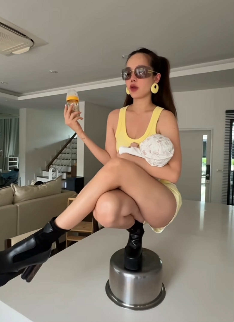 โดย โพสต์ท่าอุ้มลูกสาว และป้อนนมในสไตล์ของ นักร้องชื่อดัง อย่าง Nicki Minaj ท่านี้แสดงให้เห็นถึงความแข็งแรง และทักษะการทรงตัวที่น่าประทับใจ แต่ทันทีที่โพสต์นี้ถูกเผยแพร่ออกไป ก็มีชาวเน็ตหลายคนแสดงความคิดเห็น วิจารณ์เรื่องความปลอดภัย