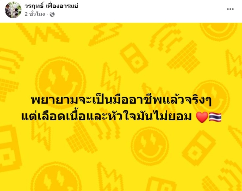 ล่าสุด ทาง น๊อต ได้โพสต์ผ่านfacebook ว่า พยายามจะเป็นมืออาชีพแล้วจริงๆ แต่เลือดเนื้อและหัวใจมันไม่ยอม