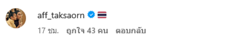 โดยทางด้าน แอฟ ทักษอร ได้ออกมาคอมเมนต์แสดงจุดยืนทันที ซึ่งคอมเมนต์เป็นธงชาติไทยด้วย