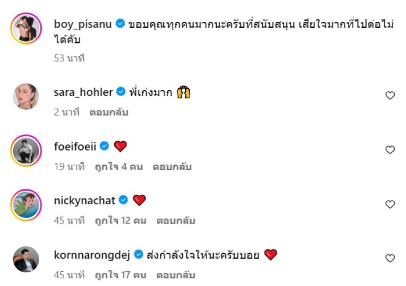 เรียกได้ว่า เป็นดาราหนุ่มที่เรื่อ มากมายเข้ามาไม่หยุด สำหรับ บอย พิษณุ ที่ก่อนหน้านั้นเจ้าตัวก็ได้ออกมาประกาศแยกทางกับภรรยาแล้วนั้นเอง ท่ามกลาง เพื่อนๆในวงการต่างส่งกำลังใจให้จำนวนมาก ร่วมไปถึงแฟนๆด้วยนั้นเอง