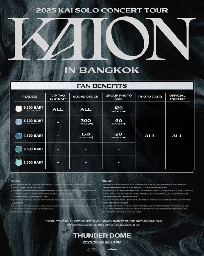 วันที่ 2 สิงหาคม 2025 นี้ แฟนชาวไทยเตรียมตัวให้พร้อม SM True ประกาศเปิดบ้านต้อนรับ KAI (ไค) หนึ่งในสมาชิกคนสำคัญของวง EXO กับการกลับมาอย่างร้อนแรงในคอนเสิร์ตเดี่ยวครั้งแรกในประเทศไทย 2025 KAI SOLO CONCERT TOUR IN BANGKOK ที่จะจัดขึ้น ณ ธันเดอร์โดม เมืองทองธานี เวลา 18:00 น.
