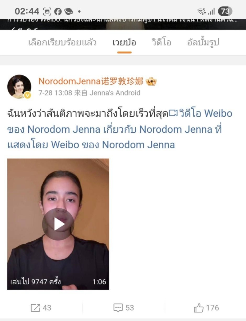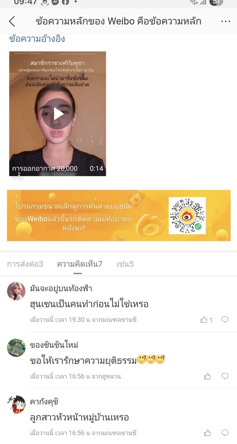 เรียกได้ว่าเป็นการพลิกวิกฤต ให้เป็นวิกฤตยิ่งกว่า สำหรับ เจ้าหญิงนโรดม เจนณา ที่ได้ออกมาโพสต์คลิปวิงวอนขอสันติภาพท่ามกลางสถานการณ์ตึงเครียดชายแดนไทย-กัมพูชา ผ่านเว่ยป๋อของจีน แต่งานนี้กลับพลิกล็อก เมื่อชาวเน็ตจีนไม่เห็นใจและถูกถล่มด้วยคำวิจารณ์รุนแรง