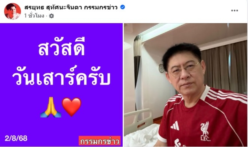 เรียกได้ว่า เป็นนักข่าวและพิธีกรดังแนวหน้าของไทย อย่าง สรยุทธ สุทัศนะจินดา ที่ล่าสุดทำเอาแฟนๆตกใจและเป็นห่วงเพียบ โดยทางสรยุทธ ได้ออกมาโพสต์ภาพเข้าโรงพยาบาลผ่านทางอินสตาแกรมส่วนตัว พร้อมระบุแคปชั่นสั้นๆว่า อาหารเป็นพิษครับ นอนไป 1 วัน 1 คืน