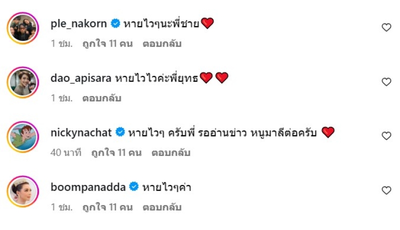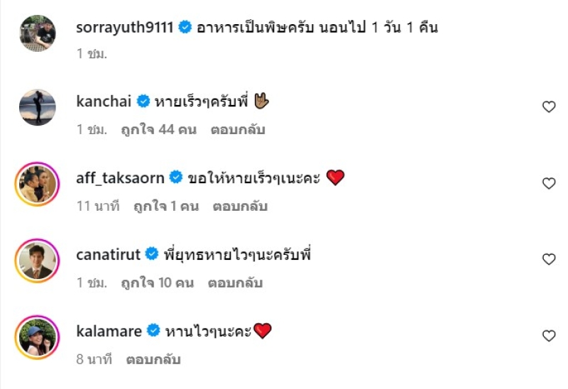 ท่ามกลาง คนในวงการ ทั้ง หนุ่ม กรรชัย และ แอฟ ทักษอร ก็ได้เข้ามาส่งกำลังใจและขอให้หายป่วยเร็วๆนั่นเอง