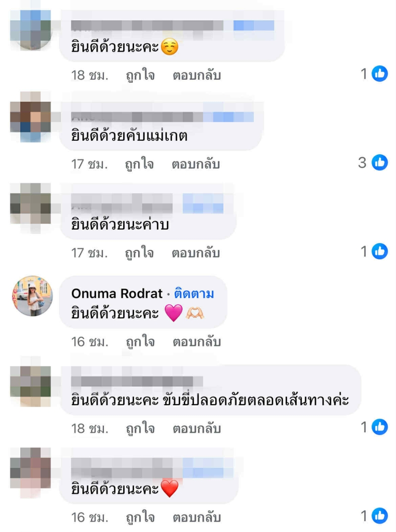 ต่อมา คุณแม่ ก็ได้มาแสดงความปลื้มปริ่มใต้โพสต์ว่า ขอบใจนะคะ ขอให้ลูกได้รับสิ่งดีๆ ร้อยเท่าพันเท่าเลยค่ะ