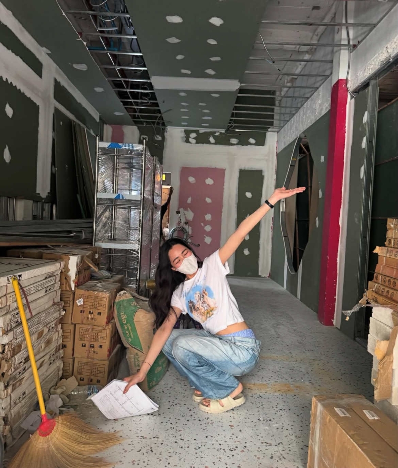 ซึ่ง ในภาพที่ถูกโพสต์ลงโซเชียล จะเห็นมุมต่างๆ ทั้งหน้าร้านที่ตกแต่งด้วยโทนสีแดงสะดุดตา และยังเห็นภาพของ เธอ ขณะถือไม้กวาดทำความสะอาด