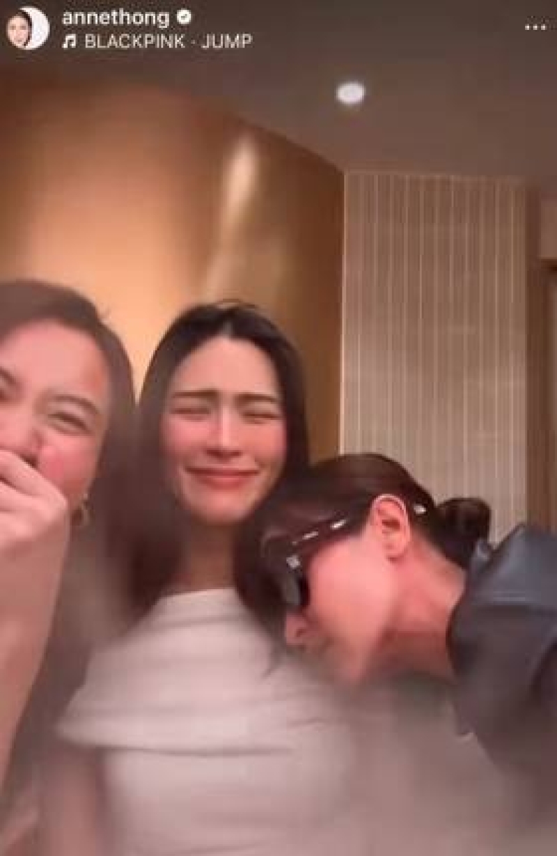 แอนไปทานข้าวกับคุณดิวกับหลิง (หลิงหลิง คอง) แล้วเชฟจะมีการโชว์ทำซูชิอยู่เมนูหนึ่งที่มีดรายไอซ์เชฟเขาก็ใส่น้ำลงไป ซึ่งเรากำลังตั้งกล้องเตรียมจะถ่ายรูปกัน แล้วบังเอิญดรายไอซ์มันเข้าหน้า คือมันเยอะมากจนเรารู้สึกขำ พุ่งขึ้นมาจนเราหายใจแทบไม่ทัน ทุกอย่างมีแค่นั้นเลยค่ะ แอนก็งงว่าไปถึงตรงนั้นทำให้เกิดการเข้าใจผิดขนาดนั้นได้ยังไง ซึ่งมันไม่ได้เกี่ยวกันเลย