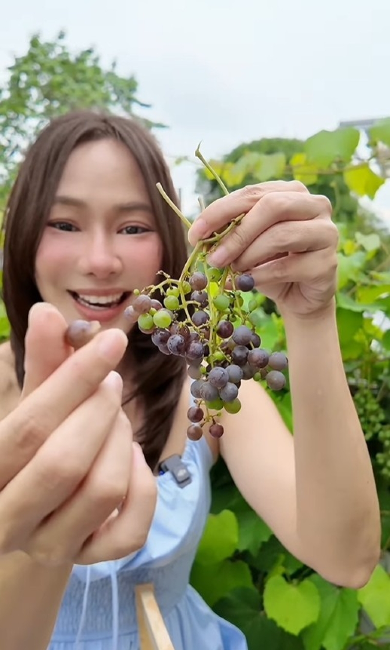 โดยในคลิปเจ้าตัวโชว์พวงองุ่นสีสวย พร้อมแคปชั่นขำๆ ว่า ถึงจะเปรี้ยวแต่ได้หน้าแหละ พร้อมติดแฮชแท็ก #กรุงเทพก็ปลูกองุ่นได้