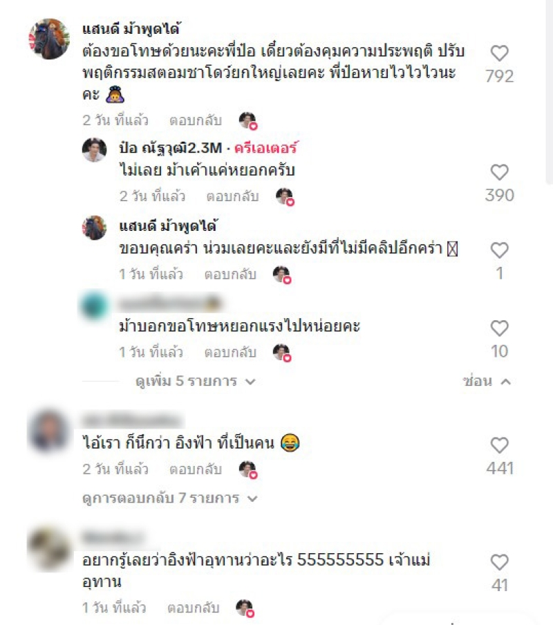 และอีกโพสต์ของป๋อ ได้เผยวินาที ถูกม้ากัด และเผยนาทีที่อิงฟ้าตกใจแรงด้วยว่า 55555 ชอบๆๆๆ เราเวลาไปไหน ก็มีแต่เสียงกรี๊ด!!! น้องอิงฟ้ายังกรี๊ดให้เราเลย ทางอิงฟ้าก็ตอบว่า เกิดขึ้นแล้วค่ะ