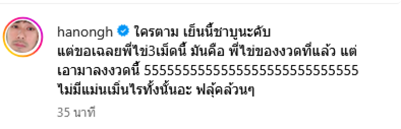 ทำเอาแฟนๆต่างเฮกันสนั่นเมื่อล่าสุด หน่อง ธนา ได้ออกมาล้วงไหของเลขเด็ด พร้อมเผยให้เห็นตัวเลขชัดๆ ผ่านอินสตาแกรมhanongh ซึ่งเป็นเลข 9-6-3 พร้อมเขียนแคปชั่นระบุว่า มันมาอีกแล้วววว 55555555555555555
