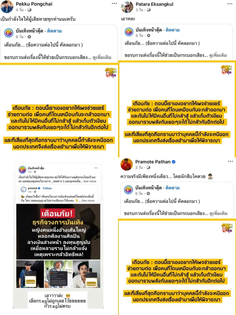 เรียกได้ว่า กลายเป็นประเด็นร้อนแรงในโลกออนไลน์ หลังจากที่เพจ บันเทิงหน้าตุ๊ด ได้แชร์โพสต์เกี่ยวกับบุคคลหนึ่ง ที่อ้างตัวเป็นคนใกล้ชิดของ หลานนายทหารใหญ่ และใช้ชื่อเสียงในวงการหลอกลวงผู้อื่น จนมีผู้เสียหายจำนวนมาก หลายคนตกเป็นเหยื่อ แต่ยังไม่มีใครกล้าเปิดเผยตัว เนื่องจากเกรงว่า จะถูกกระทำกลับจากอิทธิพลของบุคคลนี้