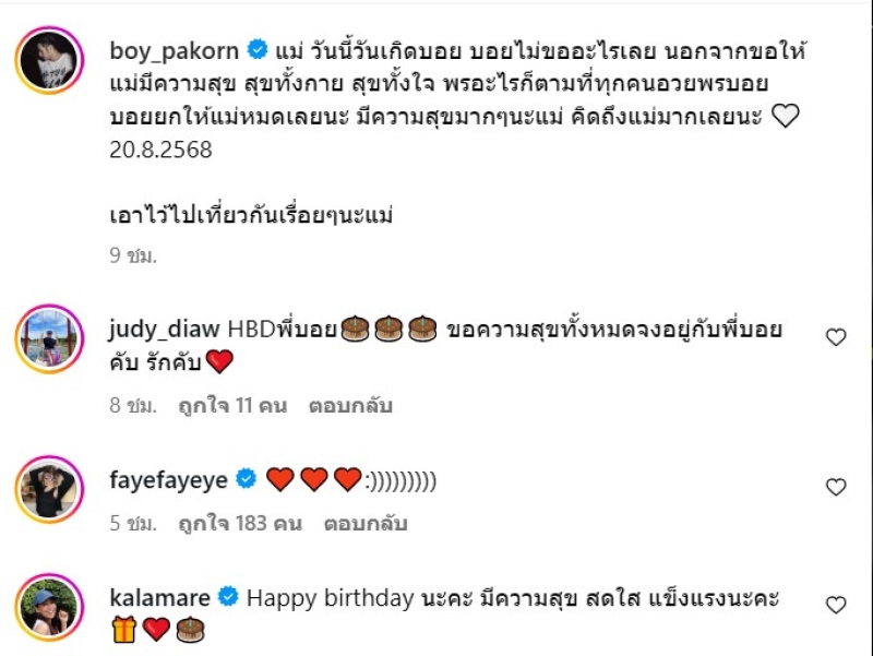 ท่ามกลาง เพื่อนๆในงการบันเทิง ได้ร่วมอวยพรวันเกิดกันเป็นจำนวนมาก