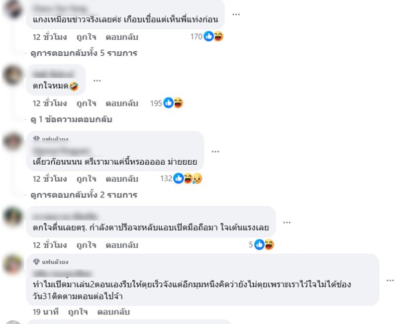 งานนี้ ทำเอาชาวเน็ต และแฟนๆต่างพูดเป็นเสียงเดียวกัน ว่า คนที่ไม่เคยดูละครแบบผม แวปแรกตกใจมาก,ถึงกะต้องเลื่อนกลับมาดูอีกรอบ,แกงเหมือนข่าวจริงเลยค่ะ เกือบเชื่อแต่เห็นพี่แท่งก่อน,ตกใจหมด,เชื่อเถอะ หลานๆคนคิดว่า คือเรื่องจริง,ใจหายหมดเข้าใจหลอกน้อหนัง,ถ้าไม่เห็นพี่แท่ง อาจจะคิดว่าเป็นข่าวจริงนะเนี่ย เป็นต้น