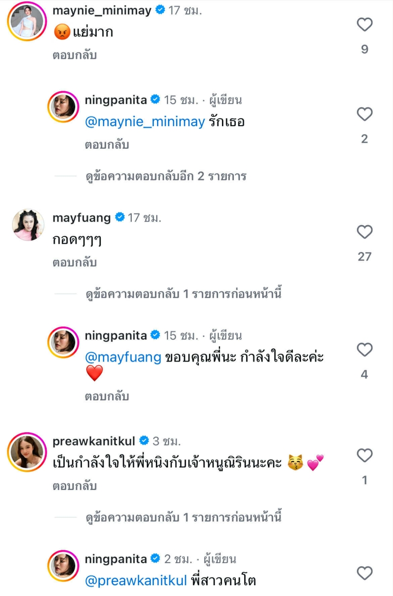 ท่ามกลางกระแสดราม่า คนบันเทิงหลายคนได้ออกมาแสดงความคิดเห็น และส่งกำลังใจให้ครอบครัวนี้ อาทิ อั้ม พัชราภา , เมย์ วาสนา , โอ๋ ภัคจีรา , และ กระแต ศุภักษร ต่างร่วมแสดงความเมตตา