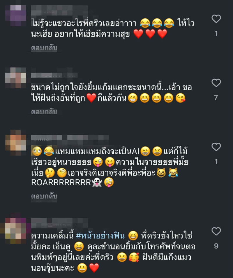 หลังจาก คลิปถูกเผยแพร่ออกไป แฟนๆ ก็เข้ามาคอมเมนต์แซวกัน อย่างล้นหลาม บางคนบอกว่า ขนาดไม่ถูกใจยังยิ้มแก้มแตกขนาดนี้