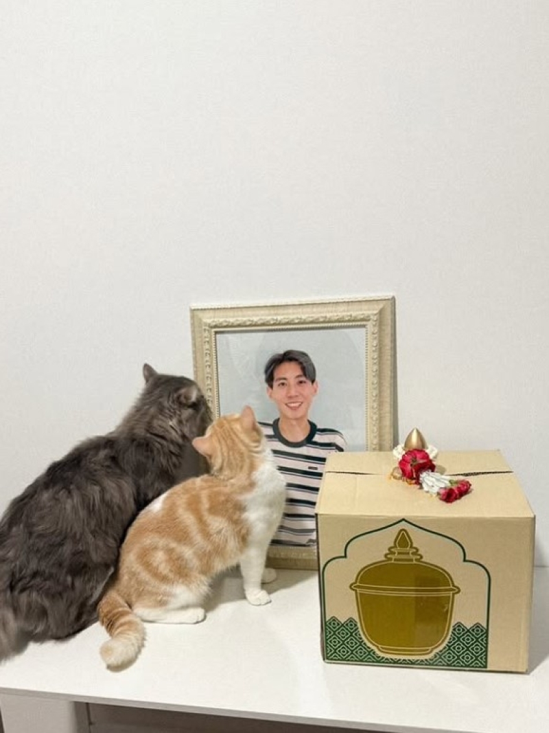 และสุดท้ายที่หนูอยากบอก บ้านที่ไม่มีพี่มันโคตรจะว่างเปล่า แต่หนูจะดูแลมันให้ดีที่สุดเท่าที่หนูทำได้ ส่วนบับบี้ เมลโล่ ไม่ต้องห่วงเลยนะ กินอิ่มนอนหลับ ( เด็กๆคิดถึงพี่มากๆเหมือนกันนะ ว่างๆแวะมาเล่นกับมันด้วย ) ส่วนตัวหนูเองขอสัญญาว่า หนูจะเข้มแข็ง ใช้ชีวิตต่อไปอย่างดี ถึงมันจะยากโคตรๆแต่จะทำให้ได้ ไม่ว่าอนาคตหนูจะเป็นยังไง พี่จะยังอยู่ในใจของหนูเสมอ เทวดาของหนูเนีย อยู่คุ้มครองหนูด้วยล่ะ รักๆ