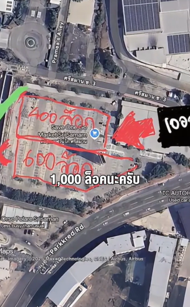 พร้อมอธิบายว่า ซฟวันโกศรีสมาน ขาดทุนเดือนละ 1,000,000 ครับ คือ 3 เดือนที่ผ่านมา ตอนแรกตลาดมีทั้งหมด 1,000 ล็อก ก็มีปัญหาเรื่องที่จอดรถไม่พอ เราก็เลยหั่น 500 ล็อกไปเป็นที่จอดรถ แล้ว 500 ล็อกเป็นพื้นที่ขาย แล้วในระหว่าง 3 เดือนที่ผ่านมา ฝนตกทุกวัน ประมาณ 90 กว่าเปอร์เซ็นต์ตก พอเวลาฝนตกเราก็จะมีลดราคาให้ผู้ค้า 50 เปอร์เซ็นต์
