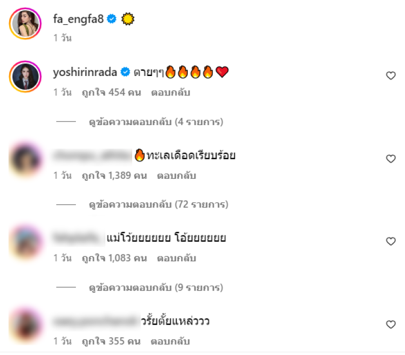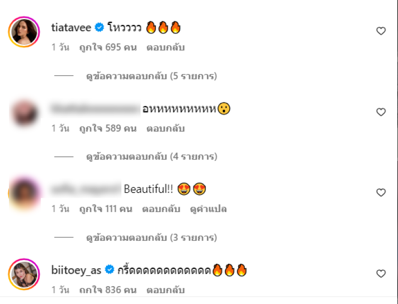 ท่ามกลาง แฟนคลับทั้วชาวไทยและต่างชาติ เข้ามาคอมเมนต์กันเพียบ อาทิ ทะเลเดือดเรียบร้อย,แม่โว้ยยยยยย โอ้ยยยยยย,แซ่บบบบบบบบบบบไม่ไหวววว,มาอีกก็มงอีก,อกจะแตกกกกก,พะ พะ พี่มุกก,สะใจมากก เป็นต้น