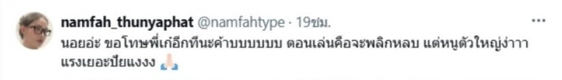 ล่าสุด ทาง น้ำฟ้า ได้โพสต์ข้อความผ่านX ขอโทษขอโพยสาวเก๋ไก๋แล้ว โดยระบุว่า นอยอ่ะ ขอโทษพี่เก๋อีกทีนะค้าบบบบบบ ตอนเล่นคือจะพลิกหลบ แต่หนูตัวใหญ่ง่าาา แรงเยอะปัยแงงง