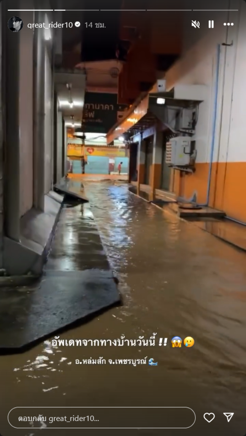 ซึ่งระดับน้ำสูงตั้งแต่เลยตาตุ่มขึ้นมาประมาณกลางหน้าแข้ง พร้อมเขียนข้อความว่า อัปเดตจากทางบ้านวันนี้!! อ.หล่มสัก จ.เพชรบูรณ์ ล่าสุดวันนี้ (1 ก.ย. 68) มวลน้ำมหาศาลไหลมาไม่หยุด ทำให้บริเวณ ร้านทองเจ๊กุ้ง ปริมาณน้ำสูงขึ้นอย่างรวดเร็ว ซึ่งระดับตอนนี้น้ำสูงเท่าเอว