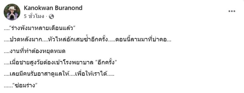 ….งานที่ทำต้องหยุดหมด ….เมื่อชายสูงวัยต้องเข้าโรงพยาบาล ”อีกครั้ง“