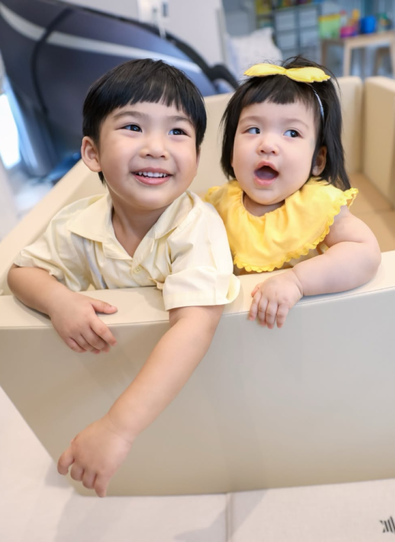 ทั้งคู่ยังเล่าต่อว่าลูกๆ เลี้ยงง่ายมาก พีร์เจว่าง่าย ส่วนเจเพิร์ลง่ายกว่าอีก มีความต่างกันนิดหน่อย พ่อพุฒบอกว่าพีร์เจจะกลัวความสูง แต่เจเพิร์ลชอบเล่นกิจกรรมโลดโผน แถมยังเหมือนแฝดกันมาก ทั้งรูปร่างและท่าทางเลย
