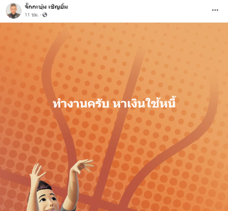 ล่าสุดจั๊กกะบุ๋ม ก็ได้โพสต์ผ่านfacebook พร้อมข้อความว่า ทำงานครับหาเงินใช้หนี้