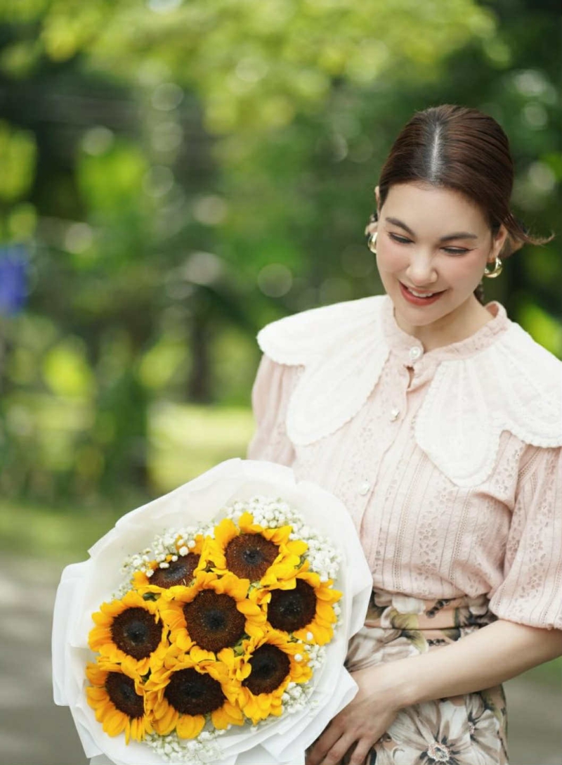 ไม่ว่าจะเป็นใครก็ตาม การได้รับช่อดอกไม้แบบนี้ทำให้ สาวโบว์ยิ้มแก้มปริ และหายเหนื่อยจากการทำงานไปเลย