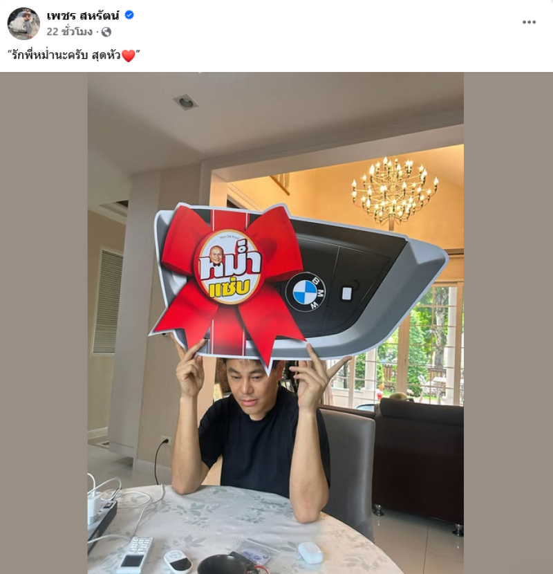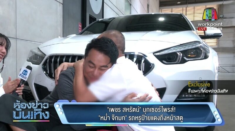 ล่าสุดเมื่อวันที่ (3 ก.ย.) ทางด้านนักร้องหนุ่มดังอย่าง เพชร สหรัตน์ ได้ออกมาโพสต์ข้อความว่า รักพี่หม่ำนะครับ สุดหัวใจ พร้อมรูปกุญแจรีโมตรถหรู BMW ต่อมาเจ้าตัวได้โพสต์ภาพนำรถไปเซอร์ไพรส์ หม่ำ จ๊กมก ถึงสตูดิโอเวิร์คพอยท์ โดย เพชร สหรัตน์ ก็เผยความรู้สึกถึง หม่ำ ว่า