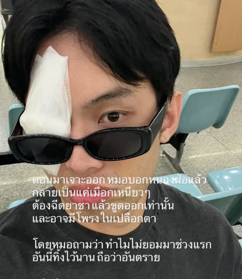 ทั้งให้คนแลบลิ้นใส่ตาและเอาไข่ต้มมาคลึง หวังว่าจะหายเอง สุดท้ายอาการกลับหนักขึ้น บวมตุ่ยจนต้องใส่แว่นดำกลบ ก่อนจะปะทุเป็นหนองจนเจ็บลืมตาไม่ขึ้น สุดท้ายเจ้าตัวต้องไปหาหมอและถูกเจาะตาอย่างด่วน ซึ่งมะตูมบอกว่าตอนนั้นเจ็บมาก แต่ก็ถือเป็นบทเรียนสำคัญ อย่าทำตามตูมเลยครับ ต่อให้ยังไม่เป็นหัวหนอง ถ้ามีอาการคันที่ตา ควรรีบไปหาหมอ เพราะมันอันตรายมาก