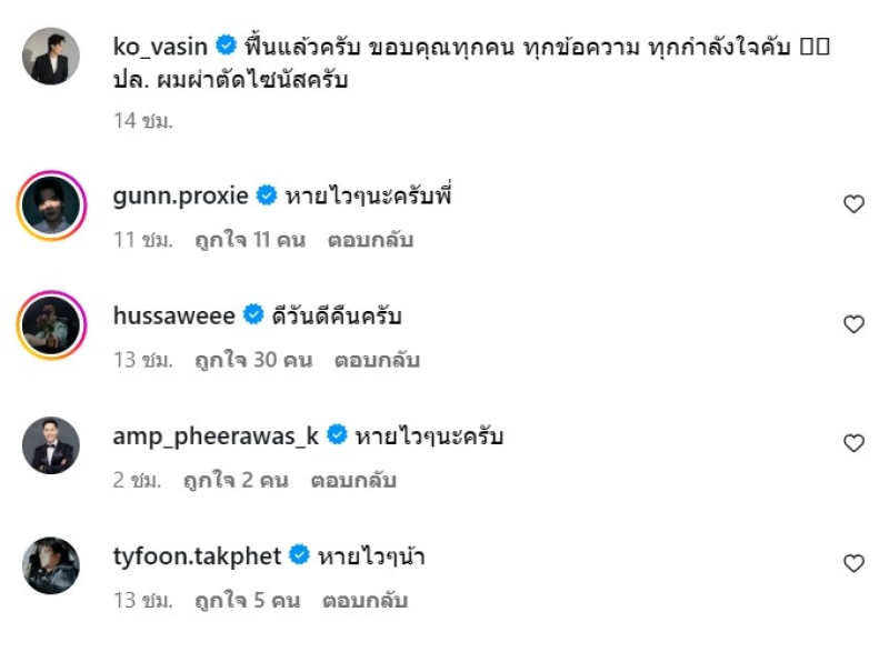 งานนี้ ทำเอาแฟนๆตกใจและคนในวงการต่างเข้ามาส่งกำลังใจให้จำนวนมาก ทางทีมข่าวขอต่อกำลังใจให้หายเร็วๆ