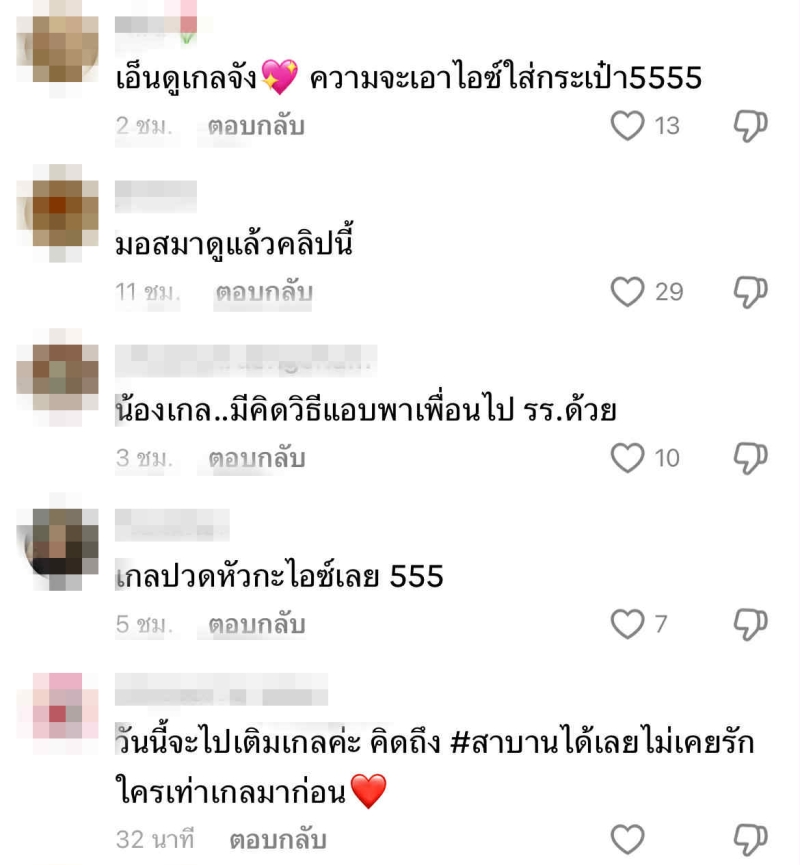 คลิปนี้ทำให้แฟนๆ ที่เห็นต่างพากันเข้ามากดไลก์ และคอมเมนต์ชื่นชมในความคิดสร้างสรรค์ของน้องเกล ที่สามารถหาทางออกให้เพื่อนได้
