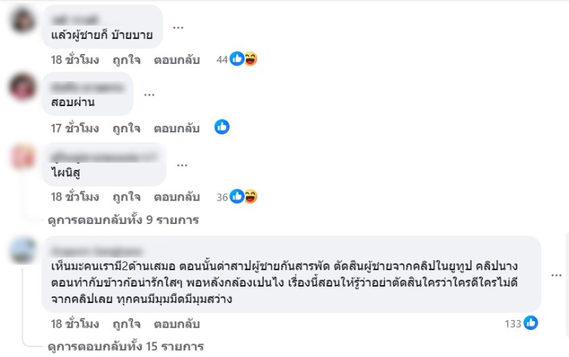 งานนี้ ทำเอาชาวเน็ตหลายคนต่างรู้เลยว่าใคร เช่น กรรมใครกรรมมันตามผลกรรม,ทำตัวเองทั้งนั้น,พี่ธาดา!! อย่าทิ้งกันยานะคะ,ผู้ชายรวย เค้าไม่เดือดร้อนหรอกค่ะ,แล้วผู้ชายก็ บ๊ายบาย,เห็นมะคนเรามี2ด้านเสมอ ตอนนั้นด่าสาปผู้ชายกันสารพัด ตัดสินผู้ชายจากคลิปในยูทูป คลิปนางตอนทำกับข้าวก้อน่ารักใสๆ พอหลังกล้องเปนไง เรื่องนี้สอนให้รู้ว่าอย่าตัดสินใครว่าใครดีใครไม่ดีจากคลิปเลย ทุกคนมีมุมมืดมีมุมสว่าง เป็นต้น