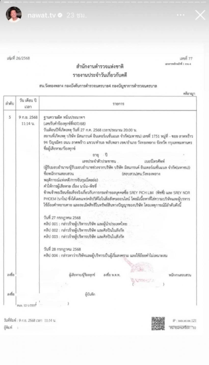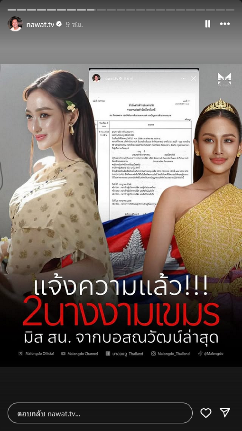 กลายเป็นประเด็นดราม่าร้อนแรงเลยทีเดียวเมื่อ ณวัฒน์ อิสรไกรศีล ยื่นฟ้อง 2 นางงามกัมพูชา หลังจากที่ พิชชี่ (Srey Pich Lim) อดีตมิสแกรนด์กัมพูชา 2022 และ นาโน (Srey Nor Phoem) มิสแกรนด์กัมพูชา 2023 ออกมาไลฟ์สดวิพากษ์วิจารณ์ประเทศไทยและผู้บริหาร MGI อย่างรุนแรง