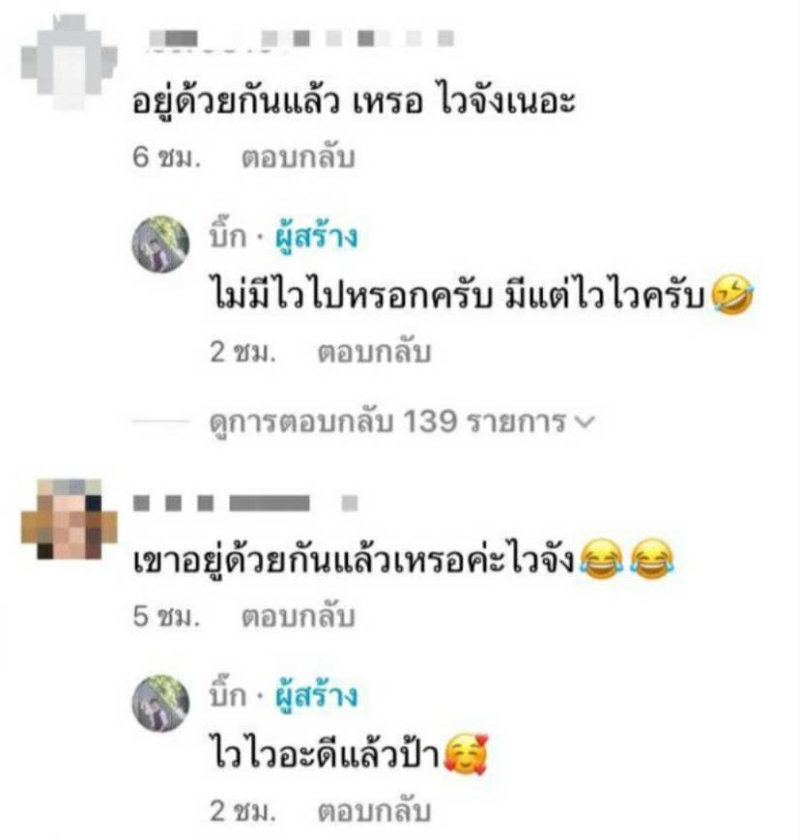 หนุ่มบิ๊ก เลยตอบกลับแบบมีอารมณ์ขัน แต่ก็สะกิดแรงเบาๆ ว่า ไม่มีเร็วเกินไปหรอกครับ มีแต่ไวไวครับ ก่อนจะแถมมุกเพิ่มด้วยการโยนคำว่า ไวไวอะดีแล้วป้า จนคนอ่านถึงกับฮาลั่น