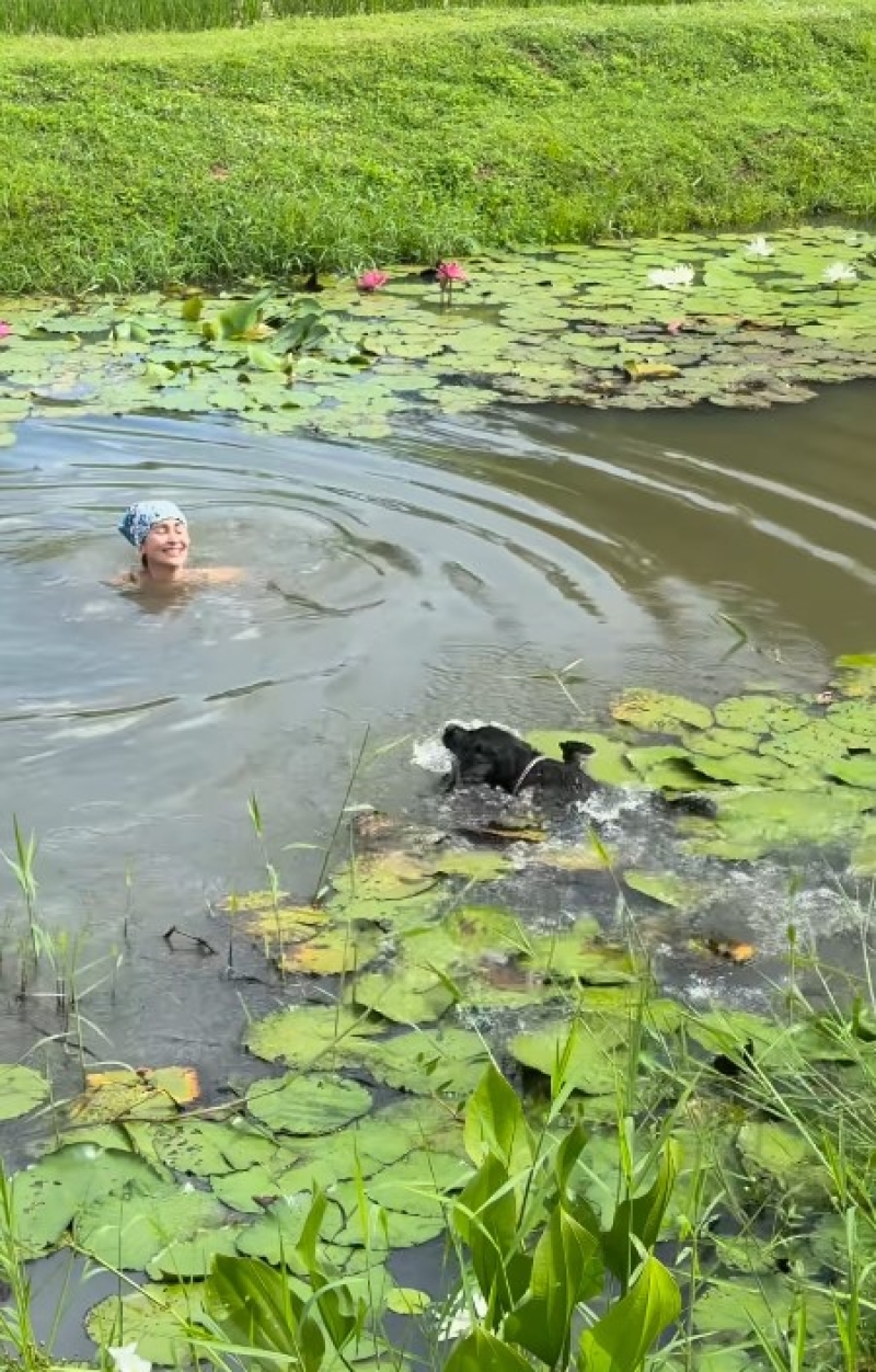 เรียกได้ว่า เป็นนางเอกที่ชอบวิ่งมากๆ อย่าง แอน ทองประสม ที่แฟนหนุ่ม เอ ทินพันธ์ ได้เดินทางไปพักผ่อนที่ จ.เชียงใหม่ ล่าสุด เอ ทินพันธ์ ได้เผยคลิปขณะที่ แอน ทองประสม ว่ายน้ำลงสระบัวเพื่อไปเก็บลูกบอลให้กับน้องหมา แต่คาดไม่คิด เมื่อน้องหมาคิดว่า แอน กำลังจะจมน้ำ จึงรีบกระโจนว่ายลงไปช่วยในทันที พร้อมระบุแคปชั่น วุ่นวาย…คนนึง..ก็หวังดีจะลงไปเก็บบอลที่ทำตกลงไปในน้ำให้ อีกตัวนึง..ก็เข้าใจว่ามีคนกำลังจะจมน้ำ สถานการณ์วุ่นวายไปหมด @nongster เจ้าของบ้านและนา