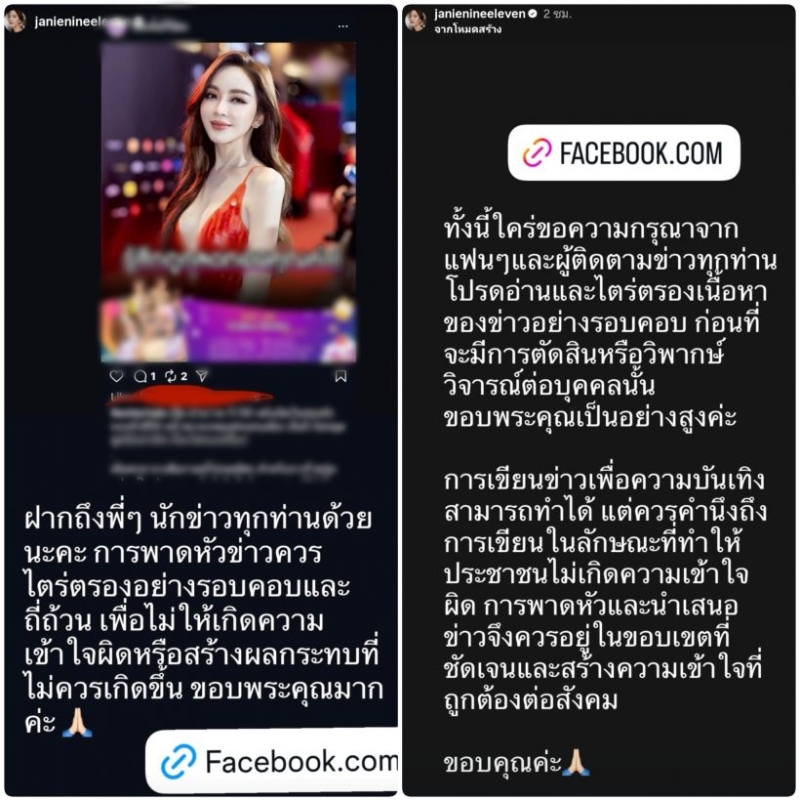 ทั้งนี้ใคร่ขอความกรุณาจากแฟนๆ และผู้ติดตามข่าวทุกท่าน โปรดอ่านและไตร่ตรองเนื้อหาของข่าวอย่างรอบคอบ ก่อนที่จะมีการตัดสินหรือวิพากษ์วิจารณ์ต่อบุคคลนั้น ขอบพระคุณเป็นอย่างสูงค่ะ