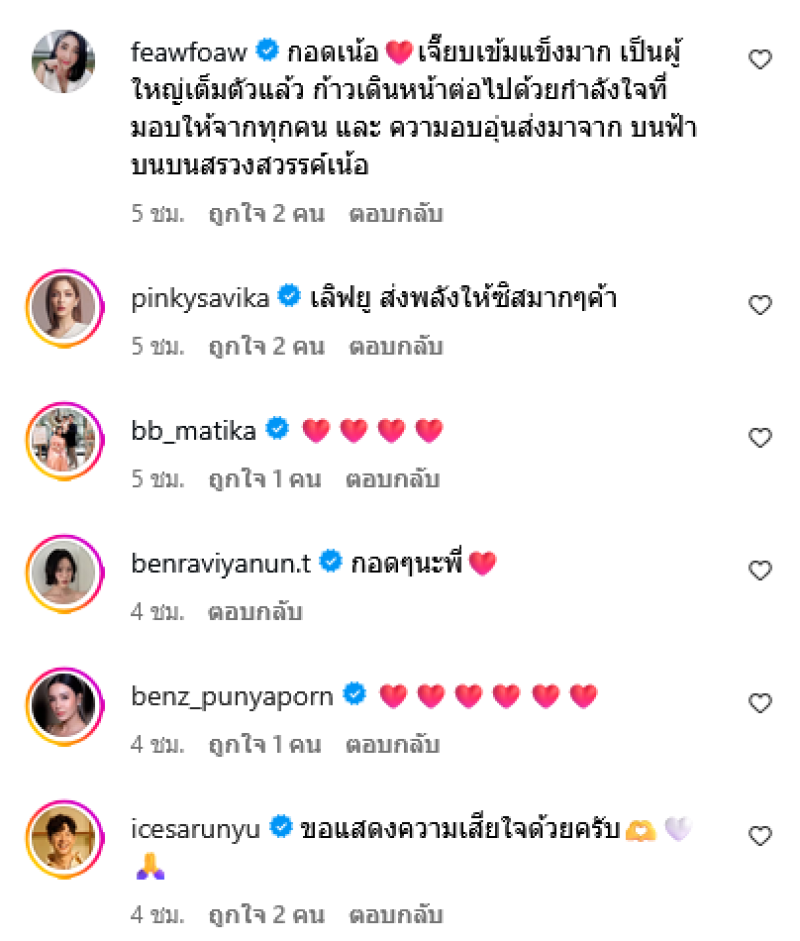 หนูจะคอยดูแลทุกอย่างเอง หนูจะแข็งแรง รวยเร็วๆ หนูจะคอยดูแลคนทางนี้เอง รักพ่อมากๆนะคะ ไม่ใช่แค่เจี๊ยบ พี่เจ๋ง จ๋า แม่ พวกเรารักปาป๋ามากๆนะคะ หลับให้สบายบนฟ้าน้า ท่ามกลางคนในวงการต่างเข้ามาคอมเมนต์ส่งกำลังใจให้กันอย่างมาก