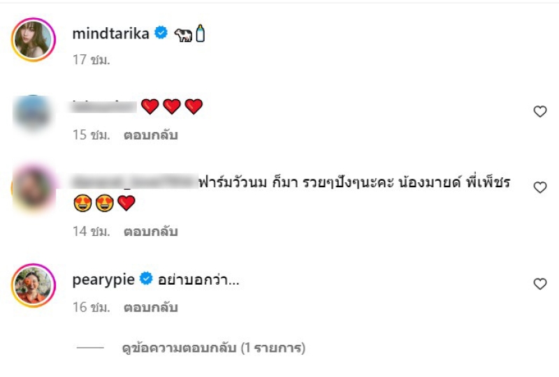 ล่าสุด ทั้งคู่ได้โพสต์ภาพคู่กับวัวในคอก พร้อมแคปชั่นเป้นอิโมจิวัวและรูปขวดนม ซึ่งดูภาพแล้วบอกได่เลยว่าอบอุนสุดๆ ท่ามกลาง แฟนๆและเพื่อนๆในวงการต่างเข้ามาคอมเมนต์เพียบ