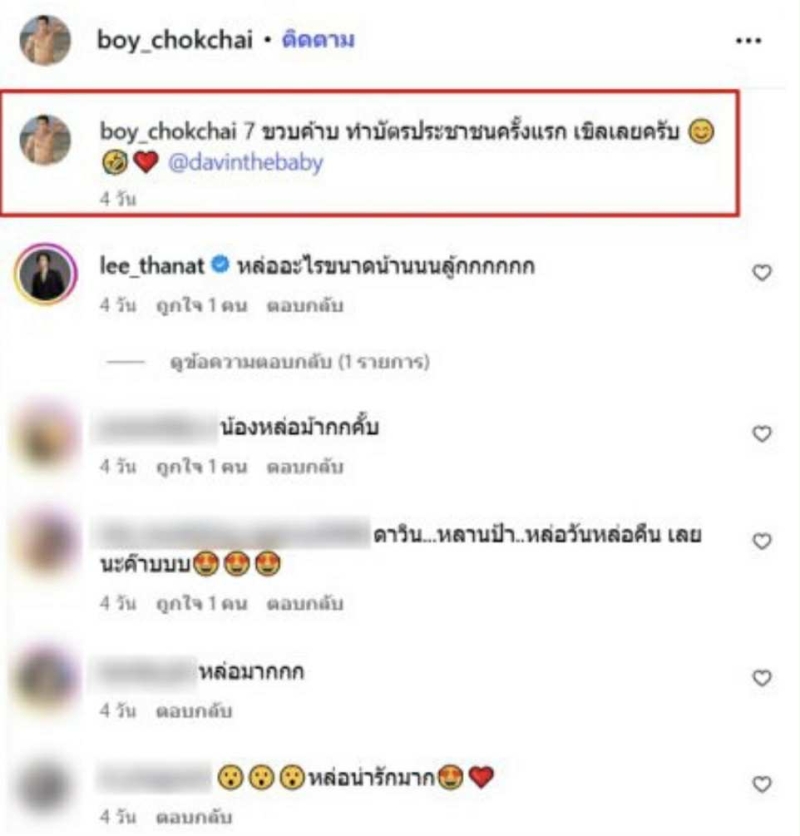 หลังจากภาพถูกเผยแพร่ แฟนๆ และชาวเน็ตต่างเข้ามากดไลก์รัวๆ และคอมเมนต์กันอย่างล้นหลาม เนื่องจากหน้าตาของ น้องดาวิน โดดเด่นเกินวัย หลายคนถึงกับเอ่ยปากชมว่าเป็น หนุ่มน้อยหล่อทะลุบัตร เพราะถึงจะเป็นภาพจากการถ่ายทำบัตร แต่กลับดูดีเกินคาด