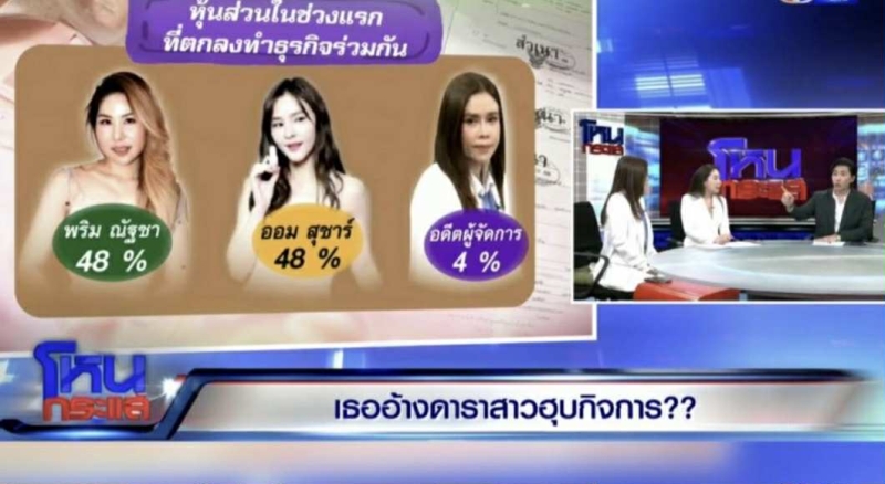 เรียกได้ว่า เป็นเรื่องที่หลายคนจับตามอง หลังรายการ โหนกระแส วันที่ 8 ก.ย. กลายเป็นเวทีร้อน ประเด็นดาราพัวพันปมหุ้นบริษัท ถูกโยงไปถึงนางเอกสาว ออม สุชาร์ และในช่วงหนึ่งของรายการ แอมป์ พิธาน แฟนหนุ่มของออม ได้โทรศัพท์เข้าร่วมรายการ เพื่ออธิบายข้อเท็จจริงด้วยตัวเอง
