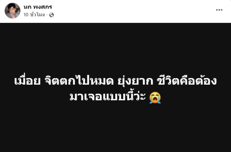 ล่าสุด นก พงศกร ได้ออกมาโพสต์หลังเจอเหตุการณ์ อีกว่า เมื่อย จิตตกไปหมด ยุ่งยาก ชีวิตคือต้องมาเจอแบบนี้ว่ะ ด้านแฟนๆก็ได้ส่งกำลังใจให้จำนวนมาก