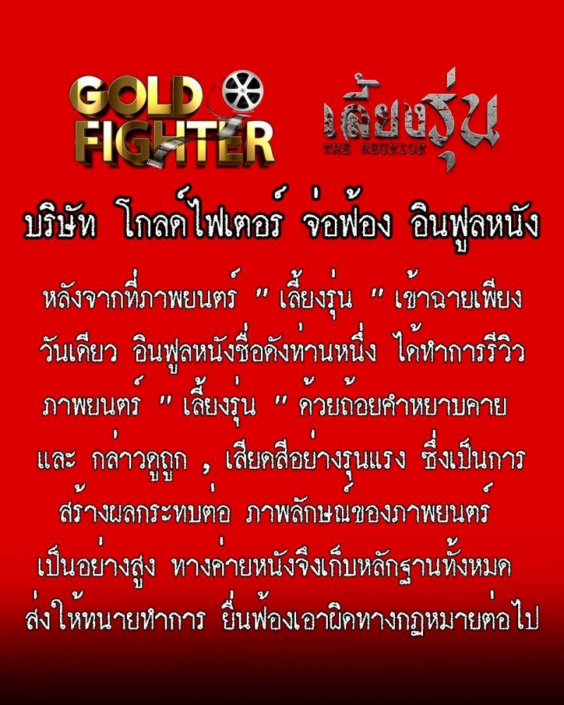 แต่มีอินฟลูเอนเซอร์บางคนใช้ถ้อยคำหยาบคายด่าว่าหนังแบบสาดเสียเทเสีย ยุยงไม่ให้คนไปดูหนัง และที่สำคัญคือมีการด่าซ้ำๆ หลายครั้ง จนเรามองว่านี่คือการทำลายบริษัทกันชัดๆ ตอนนี้จึงให้ทีมกฎหมายรวบรวมหลักฐานทั้งหมดแล้ว เจอกันที่ศาล