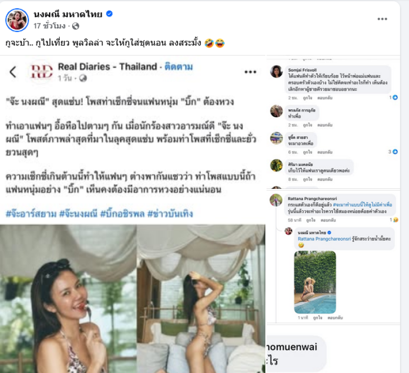 ดูเหมือนว่าจะเป็นดราม่าของชาวโซเชียลทีเดียวสำหรับนักร้องสาวเสียงดีอย่าง จ๊ะ นงผณี ที่ได้เดินทางไปเที่ยวพักผ่อนที่พูลวิลล่า พร้อมใส่ชุดว่ายน้ำชุดแซ่บลงผ่านโซเชียลของตนเอง แต่กลับมาคอมเมนต์เข้ามาด่าแรง