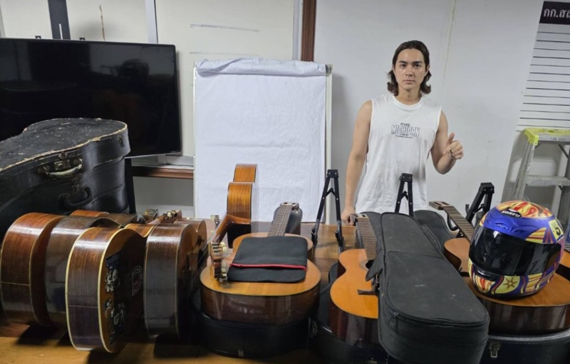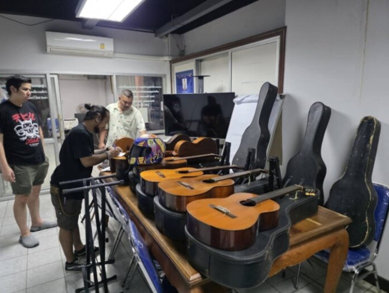 จากการตรวจค้นพบ กีตาร์ (ภาษาจีน) มีเลข 35 พร้อมกล่อง 1 ตัว , กีตาร์ (ภาษาจีน) มีเลข 1967 พร้อมกล่อง 1 ตัว , กีตาร์ (ภาษาจีน) มีเลข 85 จำนวน 1 ตัว , กีตาร์ ยี่ห้อ ACADEMY GUITAR พร้อมกล่อง จำนวน 1 ตัว พบของกลางอยู่บริเวณหน้าพฤกษาแมนชั่น ซอยรามคำแหง 60 แขวงหัวหมาก เขตบางกะปิ กรุงเทพมหานคร