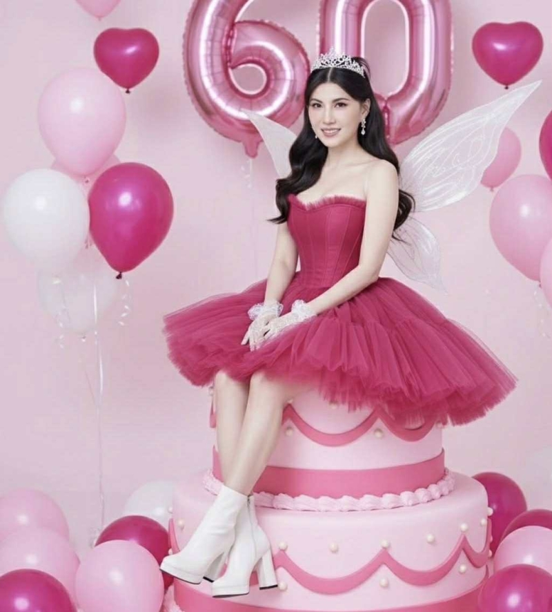 โดย ภาพดังกล่าว เธอ ถือเค้กก้อนใหญ่ มีเทียนเลข 60 ประดับอยู่ ทำให้หลายคนที่เห็นต่างพูดเป็นเสียงเดียวกันว่า เธอ ดูเด็กลงมากๆ